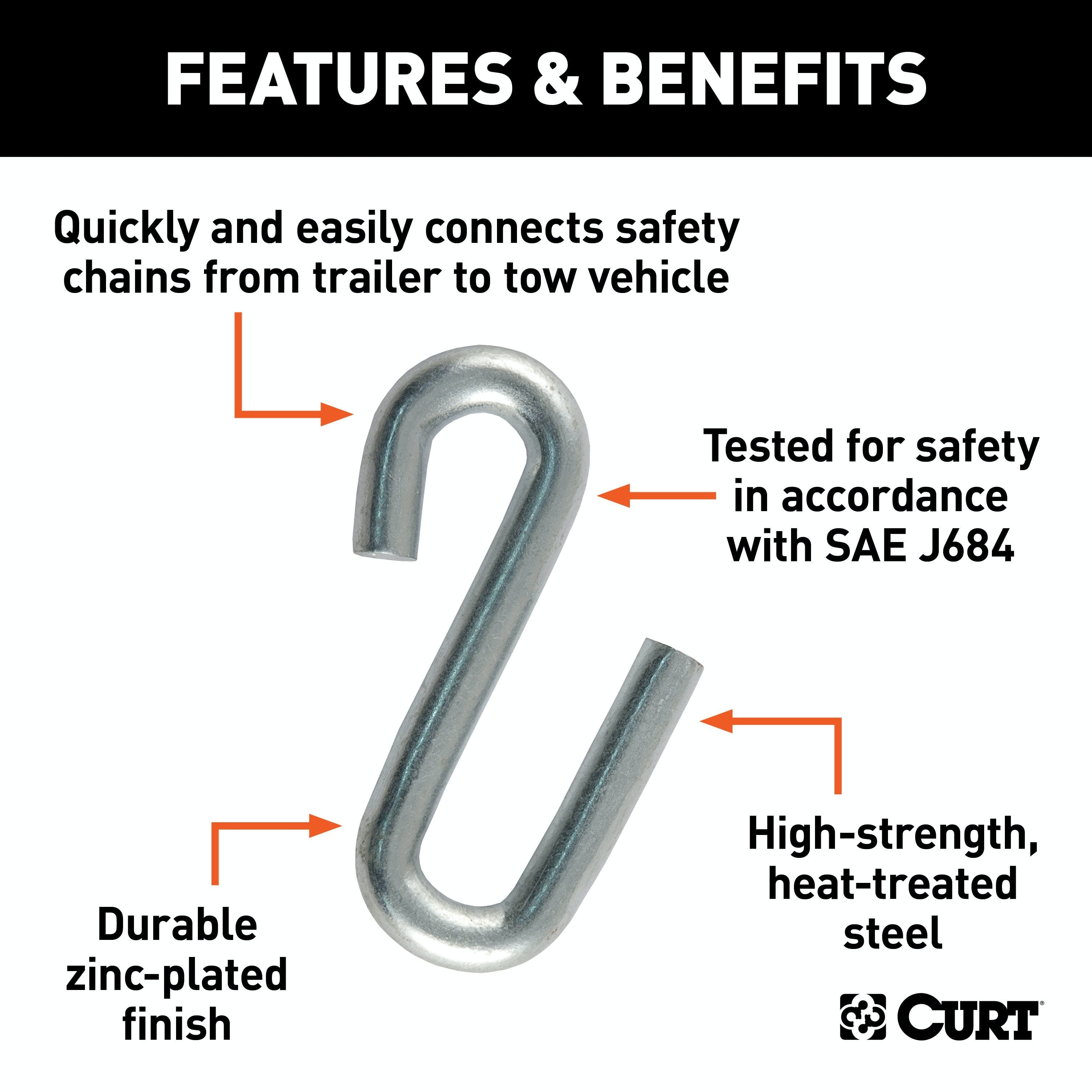CURT 81270 7/16-Inch Certified Trailer Safety Chain S-Hook, 5,000 lbs