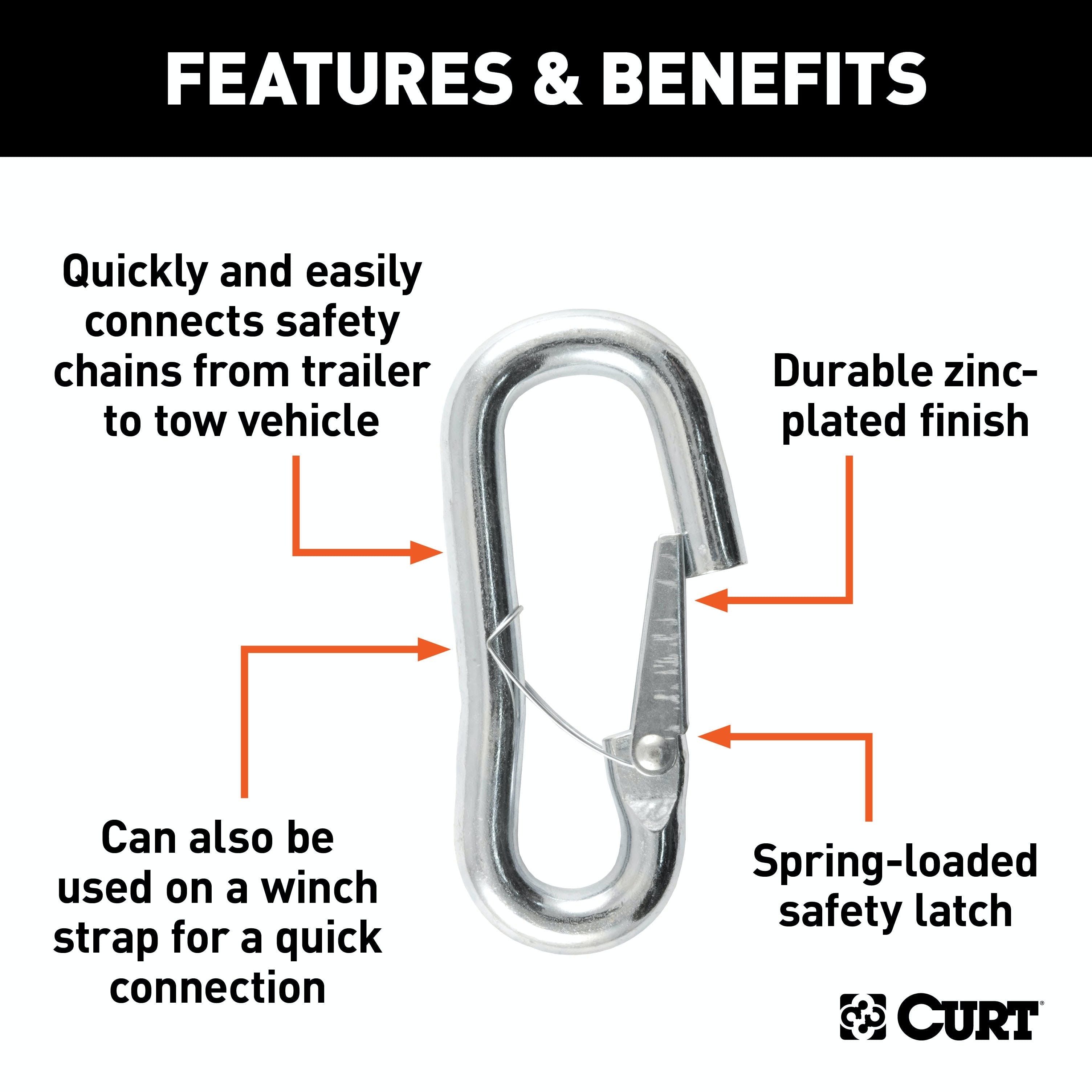 CURT 81288 Snap Hook Trailer Safety Chain Hook Carabiner Clip, 9/16-Inch Diameter, 5,000 lbs