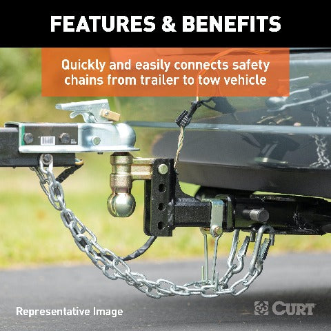 - Quickly And Easily Connects Safety Chains To Tow Vehicle