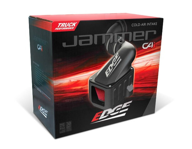 Introducing Edge's all-new Jammer Cold Air Intake (CAI) systems. The Jammer CAIs revolutionary design improves airflow by blocking hot air and using cooler, denser air for optimal efficiency. Edge performance tuning, combined with the Jammer CAI, offers best-in-class results for maximum performance, and improved continuous power. The Jammer CAI design was engineered to move the intake box away from the engine's heat to reduce warm air flow and catch the cooler outside air. Moving the air filter helps capture the outside cooler air that can be sucked into the engine for combustion. Cooler air brings more oxygen (denser air) into the combustion chamber and that means more power. When combining cooler more dense air to the engine you are able to have a more efficient combustion as well as add more fuel equaling more power. The Jammer CAI uses a large diameter intake tube that is smoother, has less bends and wider providing uninterrupted airflow. By itself, you'll notice an increase in power and especially when the throttle is fully open. Team up the Jammer CAI with other Edge performance products and you'll create a much more efficient system with maximum gains in power, mileage, and efficiency.