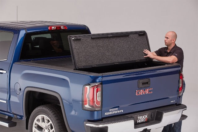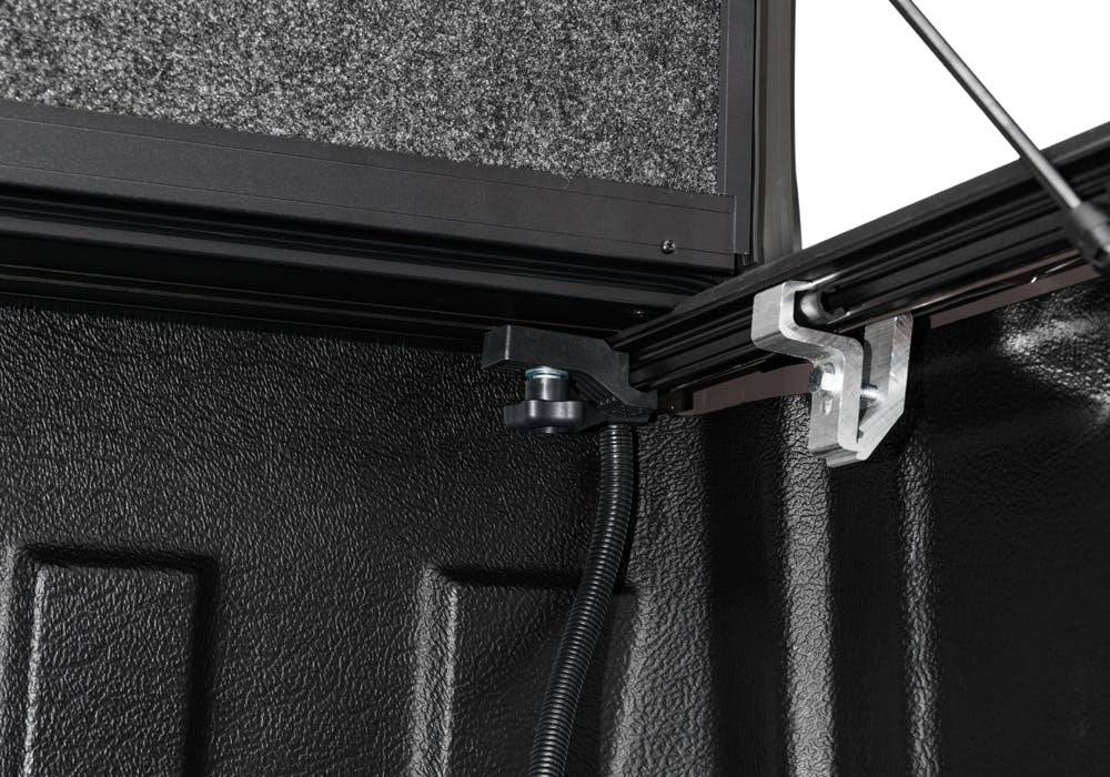 A hard folding truck bed cover that comes with overwhelming new features, and is topped off with an alluring matte finish. The Ultra Flex is in a category of its own. From the irresistible outward appearance, to each component beneath the cover, the Ultra Flex has been carefully crafted to be the ultimate all-purpose truck bed cover. All-new features that accompany the Ultra Flex include an integrated luminous rail light system for enhanced night vision, and a dual action tailgate seal, allowing for easy operation and you to close the tailgate with the cover up or down. Multiple riding positions allow the user to ride with full access to their bed, and full weather protection is available if the cover is in the fully closed position. Ultra Flex has an Easy Clamp-on design application and can be installed and removed easily with our newly designed L-Rail's. What's more, the Ultra Flex is backed by a 5-year warranty, making it the most desirable folding cover on the market.