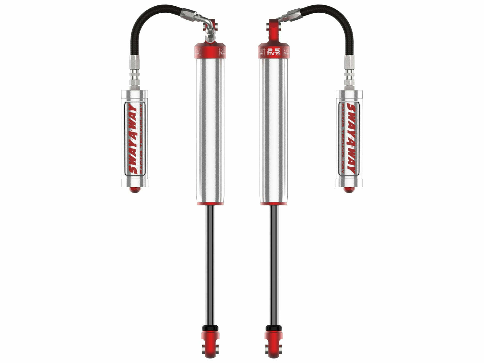 Sway-A-Way Shock Kit;Sway-A-Way 2.5 Rear Shock Kit;Shock Absorber Kit;Sway-A-Way 2.5 Rear Shock Kit w/ Remote Reservoirs for 0-1.5 IN Lifts;Ford F-250/F-350 17-23 4WD;Sway-A-Way 2.5 Rear Shock Kit w/ Remote Reservoirs for 0-1.5 IN Lifts Ford F-250/F-350 17-23 4WD;aFe Control introduces these Sway-A-Way High Performance replacement rear shocks for the Ford Super Duty. These specifically designed 2.5" diameter direct fit rear shocks feature the same race winning engineering and components that have 20+ years of testing. It offers remote reservoirs and application specific off-road damping curves that won’t sacrifice any on-road comfort or handling. These rear shocks are 100% designed and built in the USA, and feature bright zinc plated steel cylinder bodies and CNC machined aluminum components. The kit works with vehicles with 0-1.5" of lift. Also included are reservoir brackets that mount directly to vehicle without any drilling or welding. This package is designed as a direct fit application and requires no modifications to the vehicle.;Remote Reservoir with Mounting Brackets;Specifically Formulated 7wt Fully Synthetic Shock Oil;Multi-Seal Carrier to Ensure Zero Leakage;Application Specific Damping Tuned for the Best On and Off-Road Control;Completely Rebuildable Using Simple Tools;Direct Fit Installation, Requires No Modifications;7/8" Polished Nitro Steel Shafts for Strength and Durability;COM-10T Teflon Lined Steel Spherical Bearings