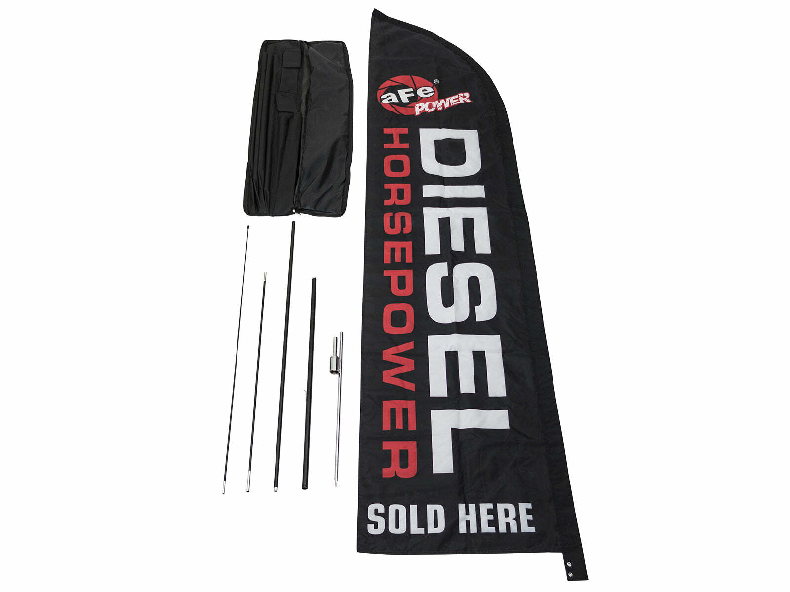 aFe POWER 12ft Flag;aFe POWER Diesel Horsepower Flag;Available to Order;Diesel Horsepower Flag, Black (Double Sided);12' Ft. Tall x 27.5" Wide (Double Sided);Diesel Horsepower Flag, Black (Double Sided) 12' Ft. Tall x 27.5" Wide (Double Sided);Show your aFe Power support with one of our NEW 12 ft. yard banner. This stylish banner is a perfect addition to the front ofany Diesel Accessory Shop. This custom 12ft x 2.5ft banner lets everyone know where to go for their aFe performance products. This banner comes in a nice black canvas bag for protection during transportation, and includes all necessary hardware to install. The banner reads "DIESEL Horsepower Sold Here.;Black Canvas Bag;12 Yard;All Necessary Hardware To Install Is Included