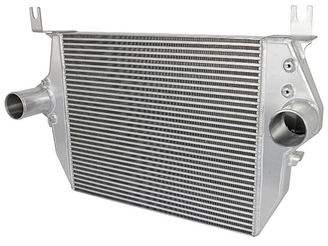This BladeRunner Intercooler represents the next generation of intercoolers. The BladeRunner intercoolers utilize a 3.15" thick bar and plate design that is 44% larger than stock and outflows OE style tube and fin core designs by 40%! Silicone Couplers with beads are used for a leak-free seal. No blowouts with this coupler. End Tanks: The unique BladeRunner end tanks are constructed out of 3/16" TIG welded aluminum plate tanks that incorporate three multi-directional vanes. Multi-Directional Vane Technology: The BladeRunner MDV technology is used to direct hot air flow through the entire intercooler core. This allows for greater cooling than competitors units. 3.15" Thick Bar and Plate Core: The use of the bar and plate core design allows for greater airflow and increased heat dissipation over the much smaller tube and fin design used by the OEM. Multiple Auxiliary Ports: Four tapped 1/8" ports are supplied on the tanks for easy installation of gauges or nitrous oxide systems. Billet Aluminum Inlet/Outlets: Each BladeRunner Intercooler uses billet aluminum inlets and outlets for superior strength and durability. The 3-1/2" inlet/outlet with reducer couplings to match stock tubes. Tig-Welded: 100% TIG-Welded by certified craftsmen for race proven strength and durability. TIG-Welding provides the strongest welds reducing stress cracks. Flow and Performance: The intercooler tube is constructed of 3" mandrel bent powder-coated stainless steel tubing for maximum flow. Smooth transition bends allow for low turbulence, increasing horsepower, torque and lowering EGT's. Comes complete with 4-ply heavy duty couplings and constant tension T-bolt clamps for a tight and secure installation. The BladeRunner Intercooler is test pressure rated at 200psi which is perfect for high boost applications. Don't waste your time and money on modified factory intercoolers. Invest in the aFe BladeRunner intercooler, the most sophisticated intercooler design on the planet.