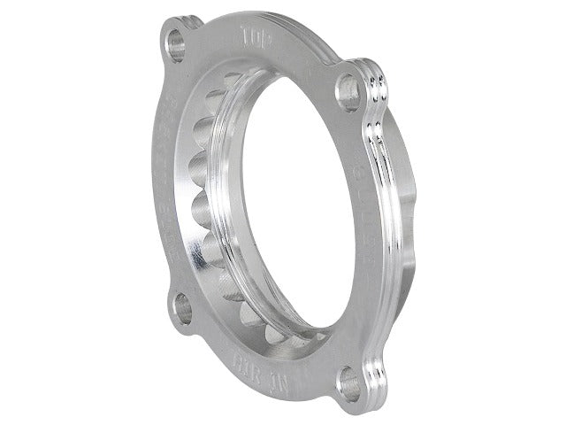 Silver Bullet throttle body spacers create turbulence in the air flow at the point just prior entry into the engine increasing horsepower, torque and improving throttle response and fuel efficiency. Silver Bullet throttle body spacers are constructed out of durable T-6061 billet aluminum and using a unique serrated/helix entry to create turbulence at the manifold while eliminating the annoying whistle found in other helix only throttle spacers.