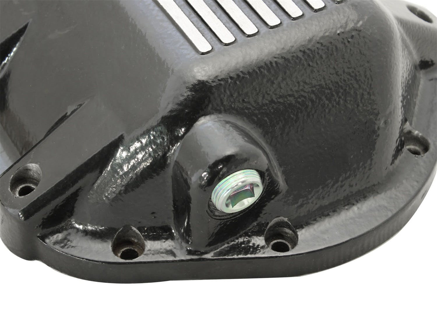 aFe Powers new differential cover brings performance engineering to the protection of your vehicles' axle. This differential cover features a magnetic drain plug and a magnetic fill plug to remove unwanted debris. Built-in external fins transfer heat from the fluid to the outside air for maximum cooling. aFe has also designed a large oil level sight glass with calibration plug set to the factory fluid level to eliminate overfilling. This differential cover is constructed out of durable nodular (ductile) iron and a gloss black powder-coated finish for maximum strength and style. When it comes to engineering for power, performance, protection and value, aFe Power is the only choice.