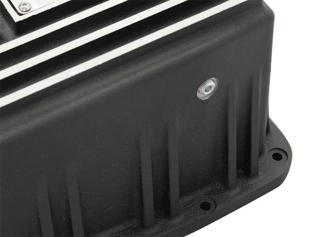 aFe POWER Pro Series deep transmission pan brings performance engineering to the protection of your trucks transmission. This transmission pan has additional capacity for 7 more quarts over stock at the factory line, a magnetic drain plug and a 1/8" NPT port for your temperature sensor. Built-in internal and external fins transfer heat from the fluid to the outside air for maximum cooling. This transmission pan is constructed out of durable die-cast A380 aluminum with reinforced ribs and a wrinkle black powder-coating for maximum strength and styling.