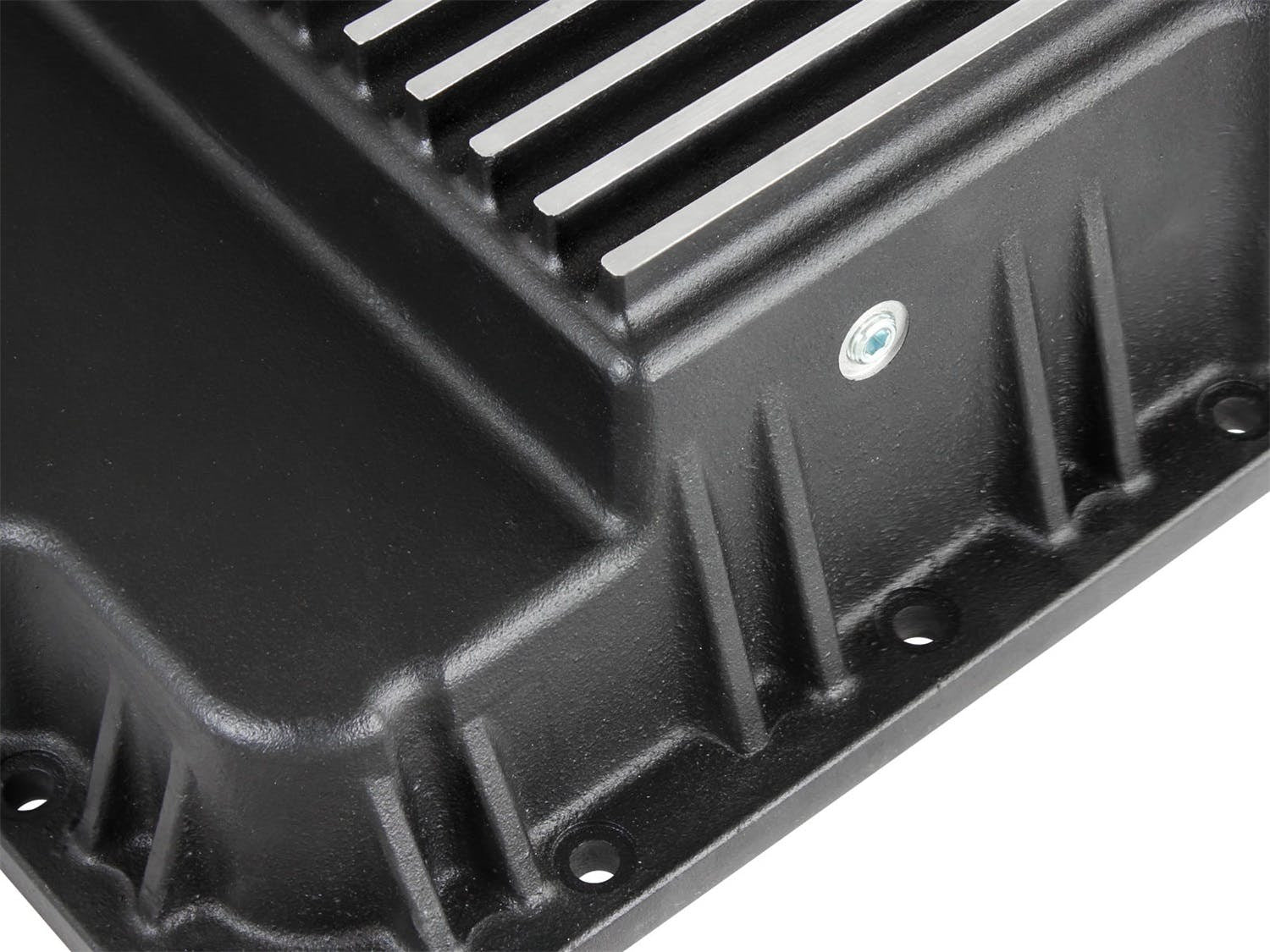 aFe POWER Pro Series deep transmission pan brings performance engineering to the protection of your trucks transmission. This transmission pan has additional capacity for 2 more quarts over stock at the factory line, a magnetic drain plug and a 1/8" NPT port for your temperature sensor. Built-in internal and external fins transfer heat from the fluid to the outside air for maximum cooling. This transmission pan is constructed out of durable die-cast A356 aluminum with reinforced ribs and a wrinkle black powder-coating for maximum strength and styling.