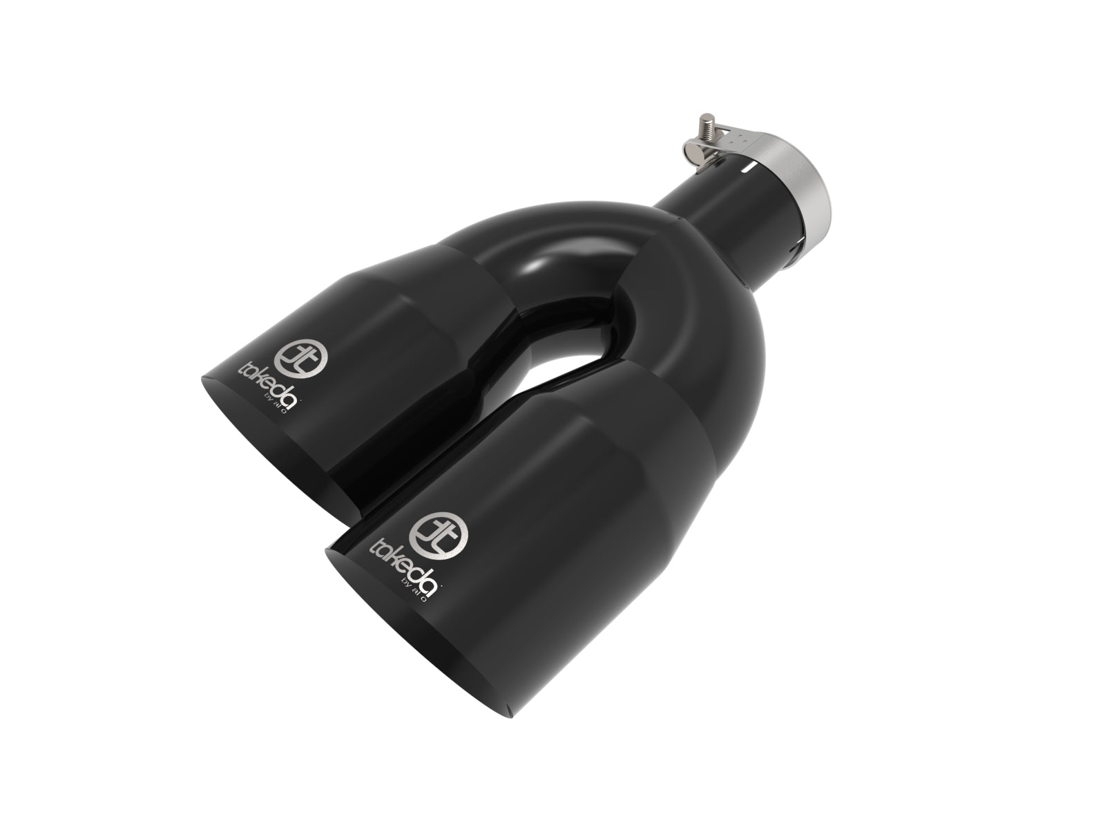 Takeda 304 Stainless Steel Clamp-on Exhaust Tip Black Improve your exhaust system by upgrading your exhaust tip with this Takeda 304 stainless steel, universal tip designed to fit most 2 1/2 exhaust systems. This 12 long, double-walled, slash cut black tip has a laser-etched Takeda logo for a custom look. Completely adjustable, the tip includes a quality stainless steel barrel band clamp for a secure fit and there is no modification or welding required. This direct-fit clamp-on tip is constructed from 304 stainless steel and features a black finish for corrosion resistance for long lasting good looks. This tip features a Takeda logo for an aggressive, custom look. A high quality stainless steel clamp is used for a complete 360 degree sealing surface. Designed to fit 2-1/2 exhaust systems; 2-1/2 inlet x dual staggered 4 outlet and 12 inch length. Left side applications. Takeda 304 Stainless Steel Clamp-on Exhaust Tip Black 2-1/2 IN Inlet x 4 IN Outlet x 12 IN L Takeda Exhaust Tip