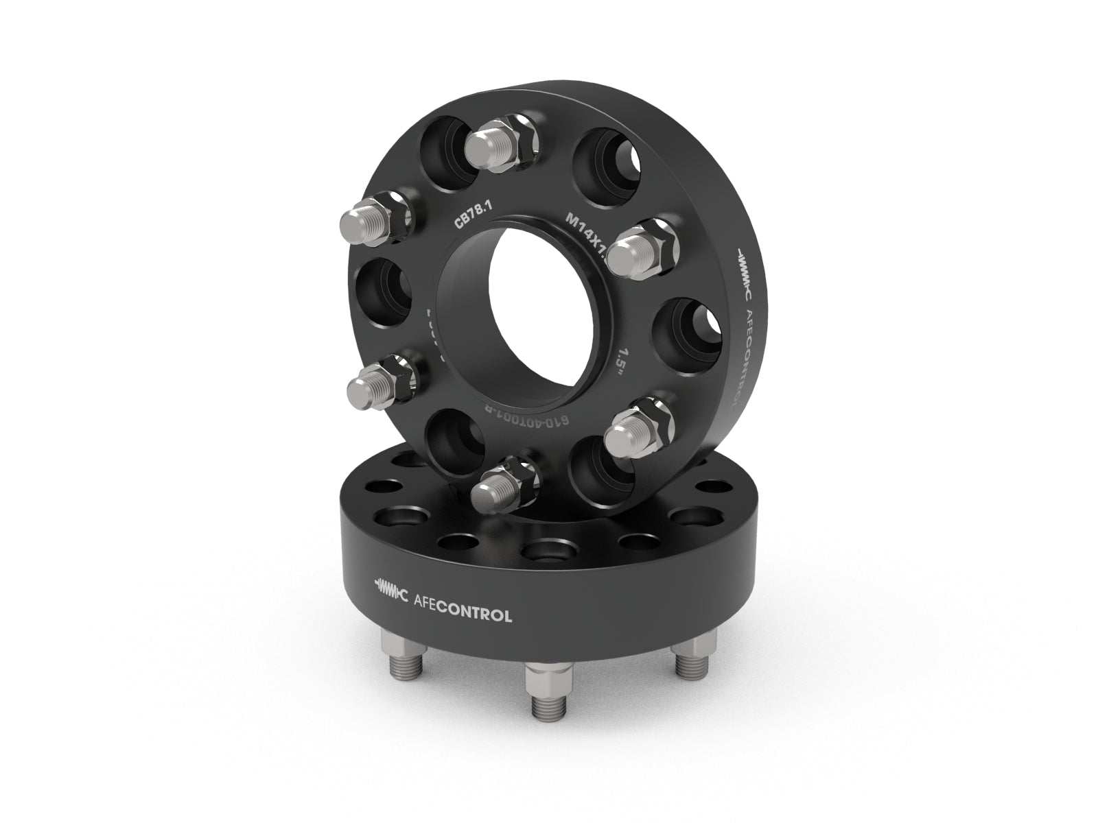 aFe CONTROL Forged Aluminum Wheel Spacers aFe CONTROL forged wheel spacers are a great way to improve the aesthetics, functionality, and wheel fitment of your vehicle. By effectively lowering the offset of your factory or aftermarket wheels, our spacers allow you to dial in a more aggressive fitment and provide clearance for other components such as brakes and suspension. The resulting increase in track width also improves handling and stability. All our spacers are designed in-house and machined to strict tolerances to ensure a perfect fit and long-lasting durability. Our hub-centric spacer design ensures the wheels are centered with the hub, allowing for wheel loads to be transferred to the hub for a stronger platform and eliminating any chance of vibration. Using 6061 aluminum heat treated forged blanks, our spacers are CNC machined to strict tolerances resulting in superior strength and precision. aFe CONTROL Forged Aluminum Wheel Spacers Chevrolet 1500 19-25 6x5.5mm, CB 78.1mm, 1-1/2 IN Thickness Wheel Spacer Kit