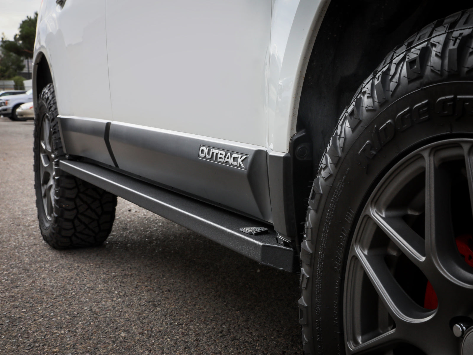 Trail Step;Terra Guard Trail Step;Step Nerf Bar;aFe POWER Terra Guard Trail Step;Subaru Outback 10-14 H4/H6;aFe POWER Terra Guard Trail Step Subaru Outback 10-14 H4/H6;Introducing the Terra Guard Trail Step for your Subaru Outback: Your key to elevated adventures! Conquer any expedition with confidence using our large, high grip step pad for easy rooftop access. Durable steel construction ensures long-lasting strength, while the textured black powder-coated finish promises unmatched durability. Replacing factory cladding without drilling or cutting, our unique design utilizes original mounting points and allows for added ground clearance. Unlock the potential of your Outback and elevate your journeys with the Terra Guard Trail Step - where functionality meets style. Our high grip step provides a secure platform to gain access to roof top storage and gear. Replaces factory lower plastic cladding, utilizing original mounting points with no drilling or cutting required. Slotted drain holes in pinch seam rail allow for water drainage. All steel construction for long lasting strength and durability. Finished in a textured black powder coating not only ensures long-lasting durability but also adds a touch of rugged elegance to your vehicle's appearance.;Large step pad area;All steel construction;Added ground clearance;Installation requires no drilling or cutting;Textured Black powder coated finish;Proudly made in the USA