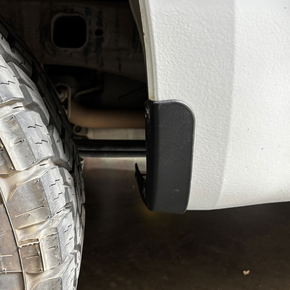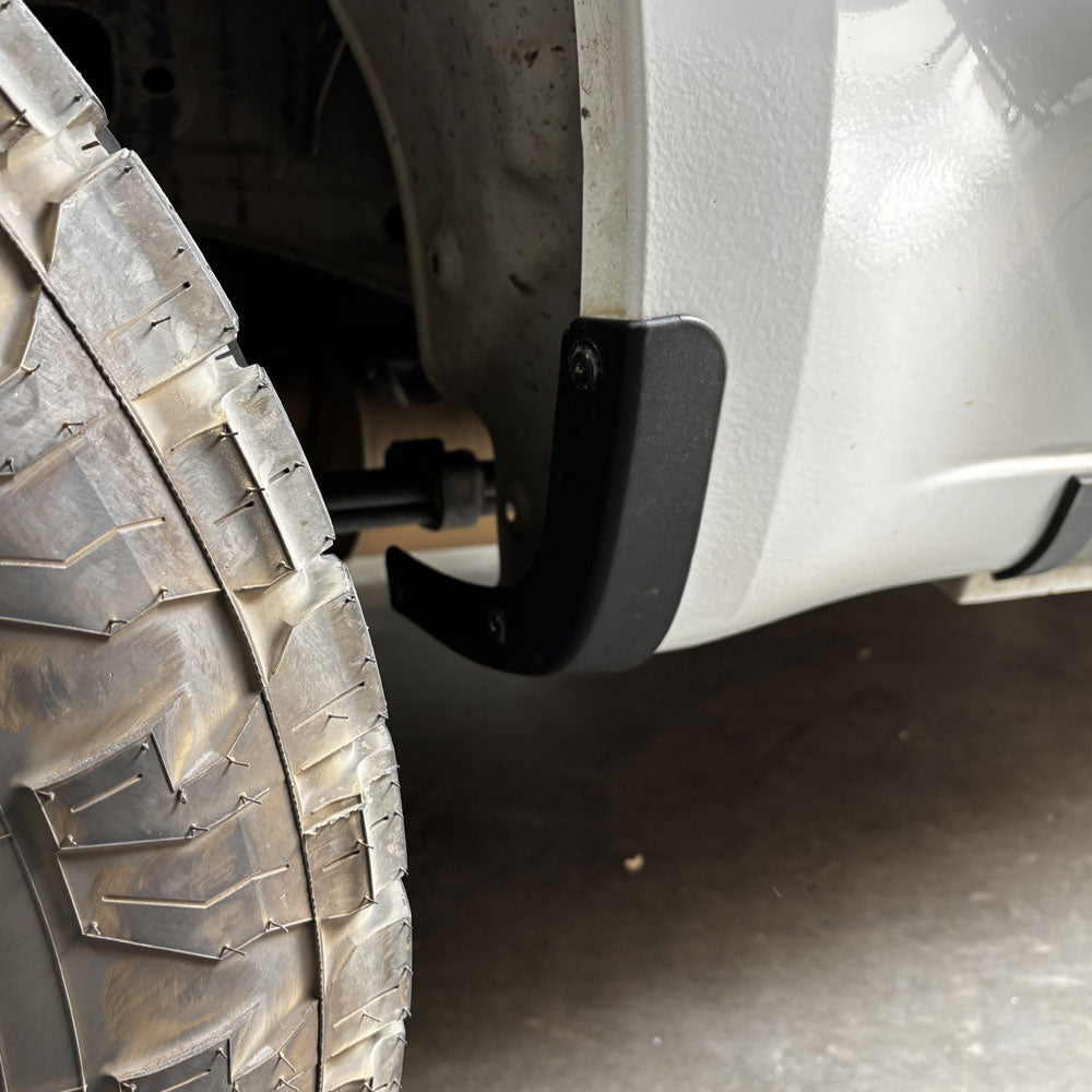 The S&B Mud Flap Deletes eliminate the front(rear) flap and rear(front) flap. Both of these flaps are prone to rubbing with bigger tires