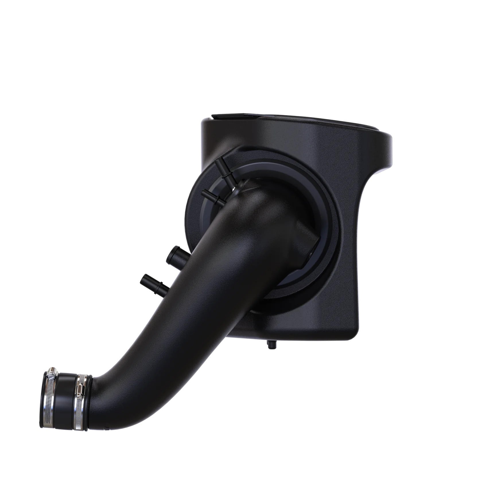 The inlet at the filter lead to unrestricted airflow all the way to the turbo through our high-flow intake tube. The stock intake pulls through 1 restrictive panel filter.