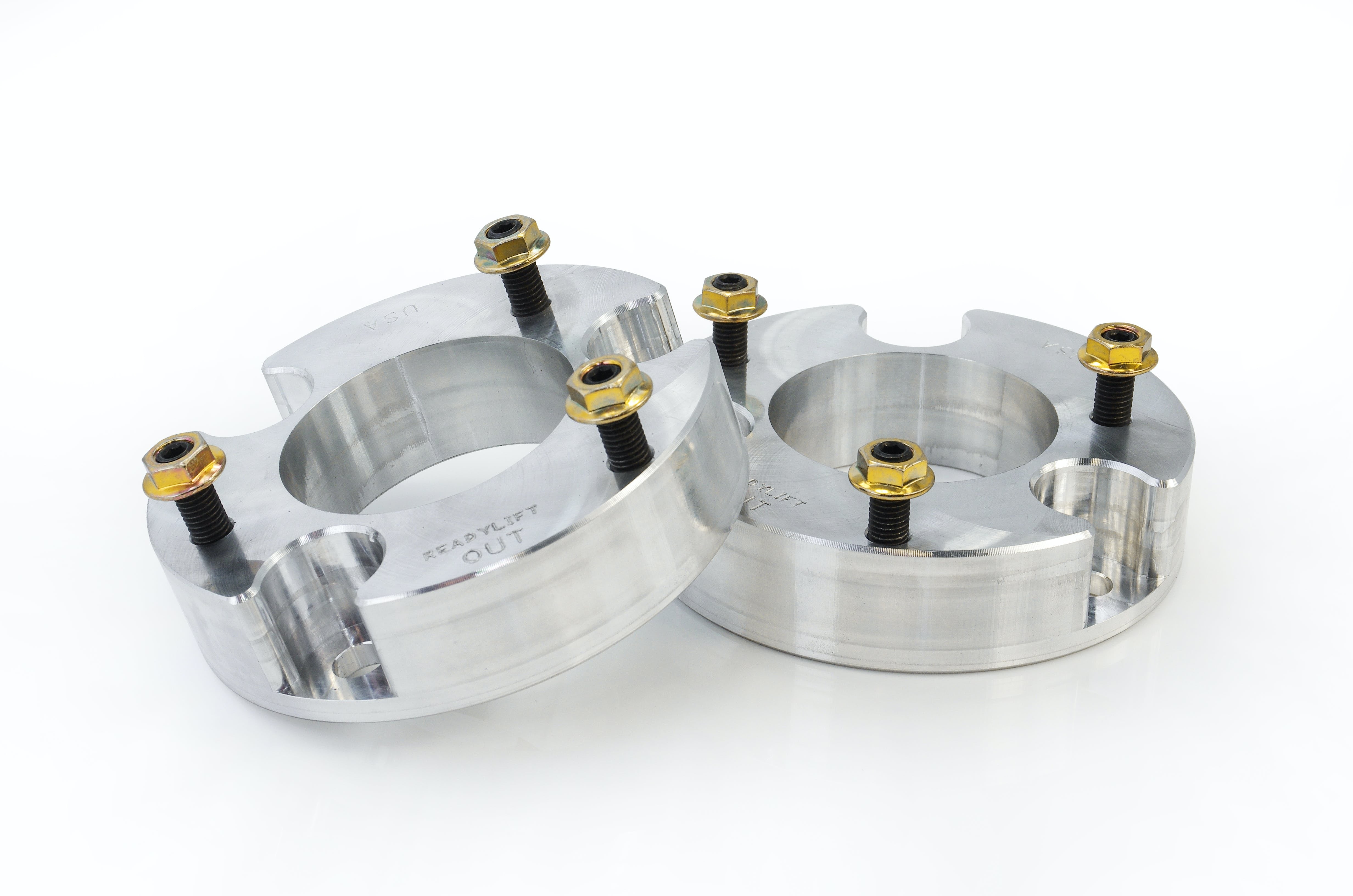 Front Leveling Kit; 2.25 in. Lift; CNC Machined Billet Aluminum Strut Extensions; Offset Spacer; w/Hardware; Allows Up To 35 in. Tire;