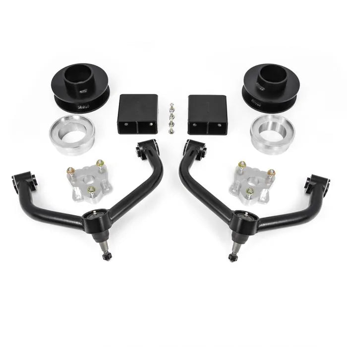 NOTE: Not for use on trucks that are factory pre-lifted/leveled or that have the "off-road package". Check factory height prior to ordering or installing. This kit is not recommended for trucks with more than 22" of wheel hub to fender lip height.