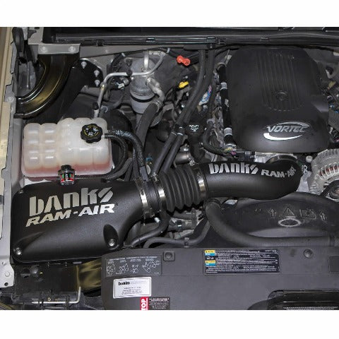 Banks Ram-Air Superiority. (For 4.8L, 5.3L, 6.0L and 6.2L only) Banks Ram-Air Intake feeds your Chevy/GMC gas engine cooler, denser, outside air for greater power and fuel economy. Its performance is extensively tested and validated: in the computer, using Computational Fluid Dynamics software - on the flowbench - and later, on the vehicle. Let the others build and ship: Ram-Airs performance is proven, again and again! Note: This product does not fit 2500 or 3500 pickup trucks. Banks Ram-Air for Chevy/GMC V8s.