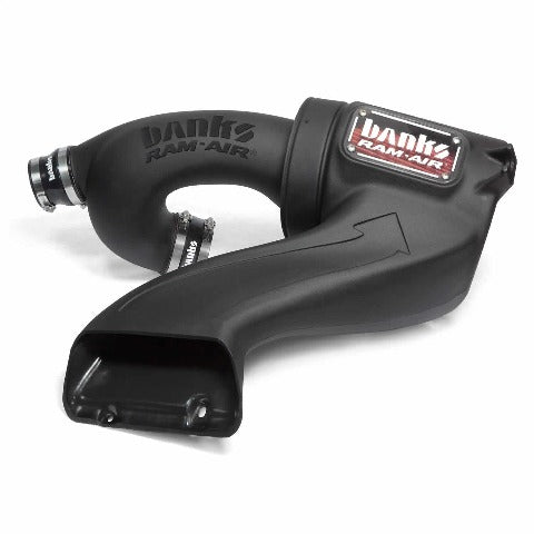 Banks Ram-Air Superiority. Banks opens up your trucks breathing with a flowbench-developed and dyno-proven Ram-Air Intake System that is less restrictive than stock. Ram-Airs filter has a huge outlet with deep filter pleats that maximize flow and a complete air filter housing that draws in cooler, denser air to the engine for greater power and fuel economy. Filter on a stick: a joke thats not funny. A filter on a stick is a bad joke. Its wide-open to hot, power-robbing underhood engine air. Ram-Air houses a giant filter in an enclosed cold-air box, which inhales cool, dense outside air? more than Banks competitors and way more than stock? for more power and more mileage. And its designed to not cause fault or error codes. The Banks Ram-Air utilizes the stock base. Its an easy, hassle-free fit that ensures a secure connection and no disruption to air flow.