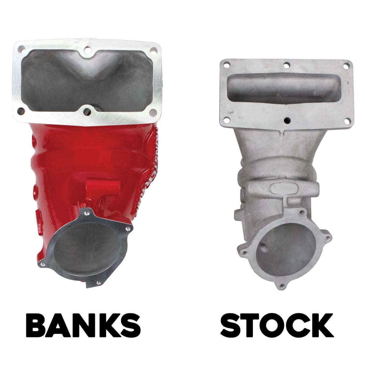 The Monster-Ram improves airflow from the intercooler. It flows 72.7 lbs/min with Banks’ New Coil Heater and High-Flow Cast Intake Plate compared to stock's 38.6 lbs/min MAF. That is a huge 88.3% improvement over stock you can feel!