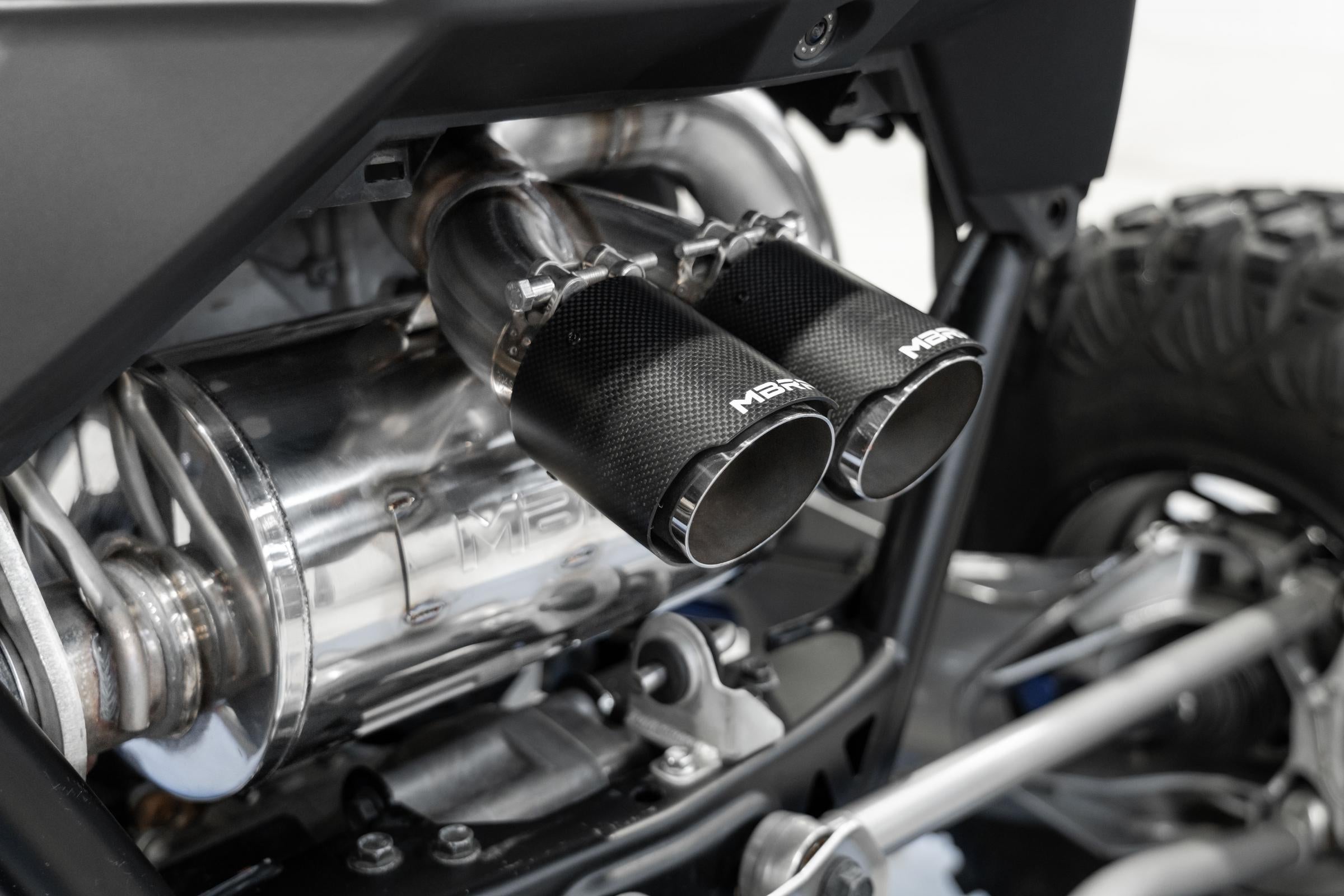 MBRP Exhaust 2022-Up Polaris RZR PRO R T304 Single Slip-on Dual Outlet Performance Series Exhaust with Carbon Fiber Tips MBRP