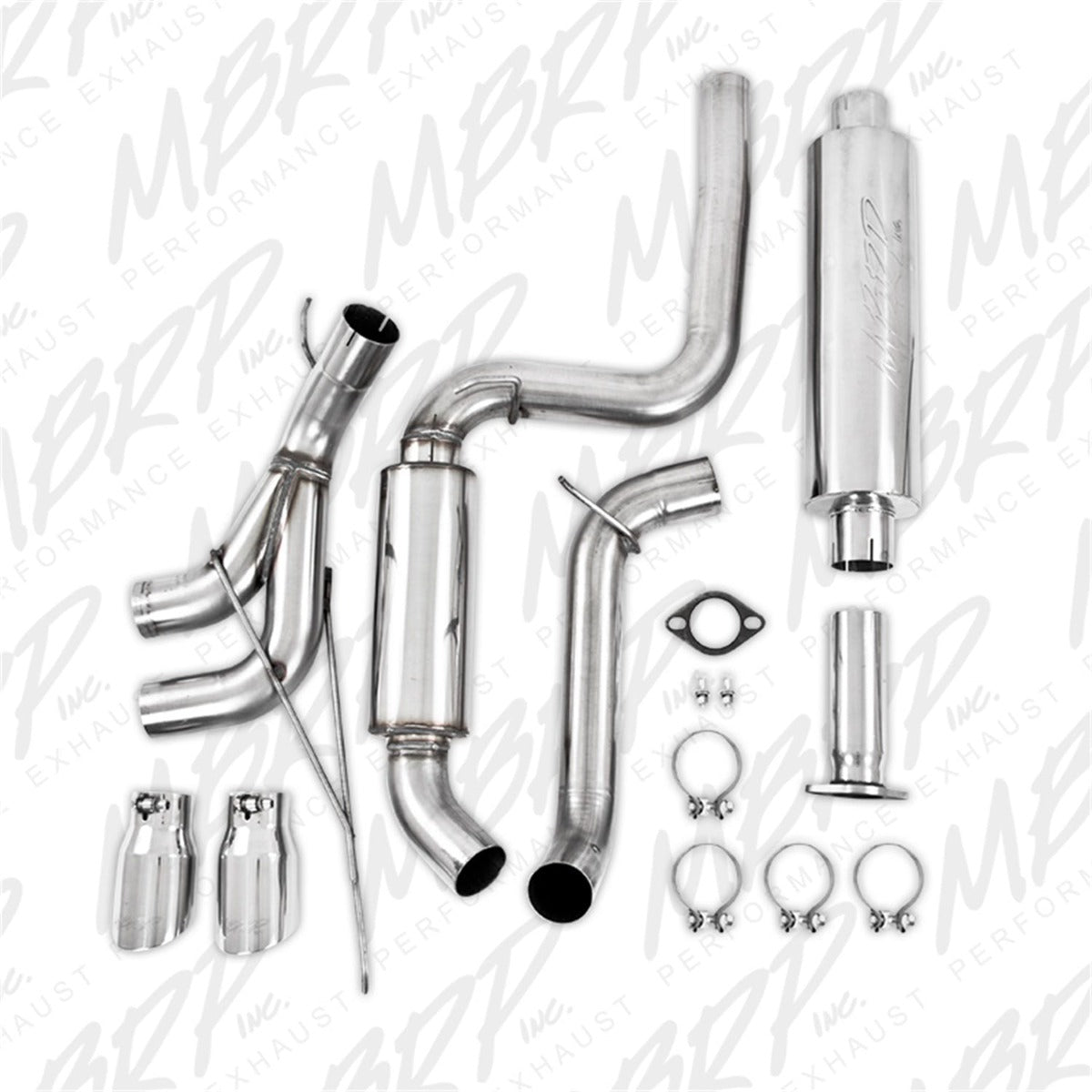 XP Series Cat Back Exhaust System; 3 in.; Incl. Ext. Pipe/Muffler/Resonator/Over Axle Pipe/Tailpipe/Hardware/Dual 4 in. OD Tips; Dual Center Exit; T409 Stainless Steel;