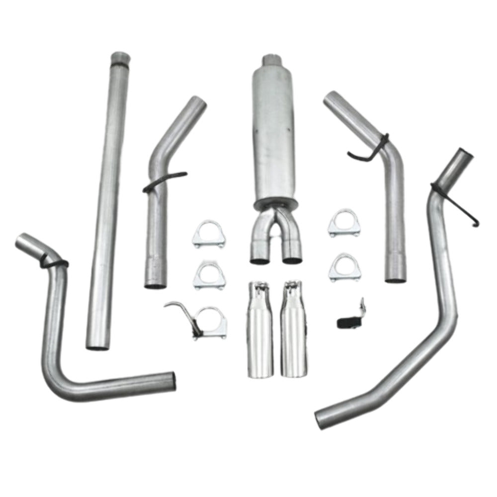Installer Series Cat Back Exhaust System; 2.5 in.; Incl. Ext. Pipe/Muffler/Over Axle Pipes/Tailpipes/Hardware/3.5 in. OD Tip; Dual Split Side Exit; Aluminized;