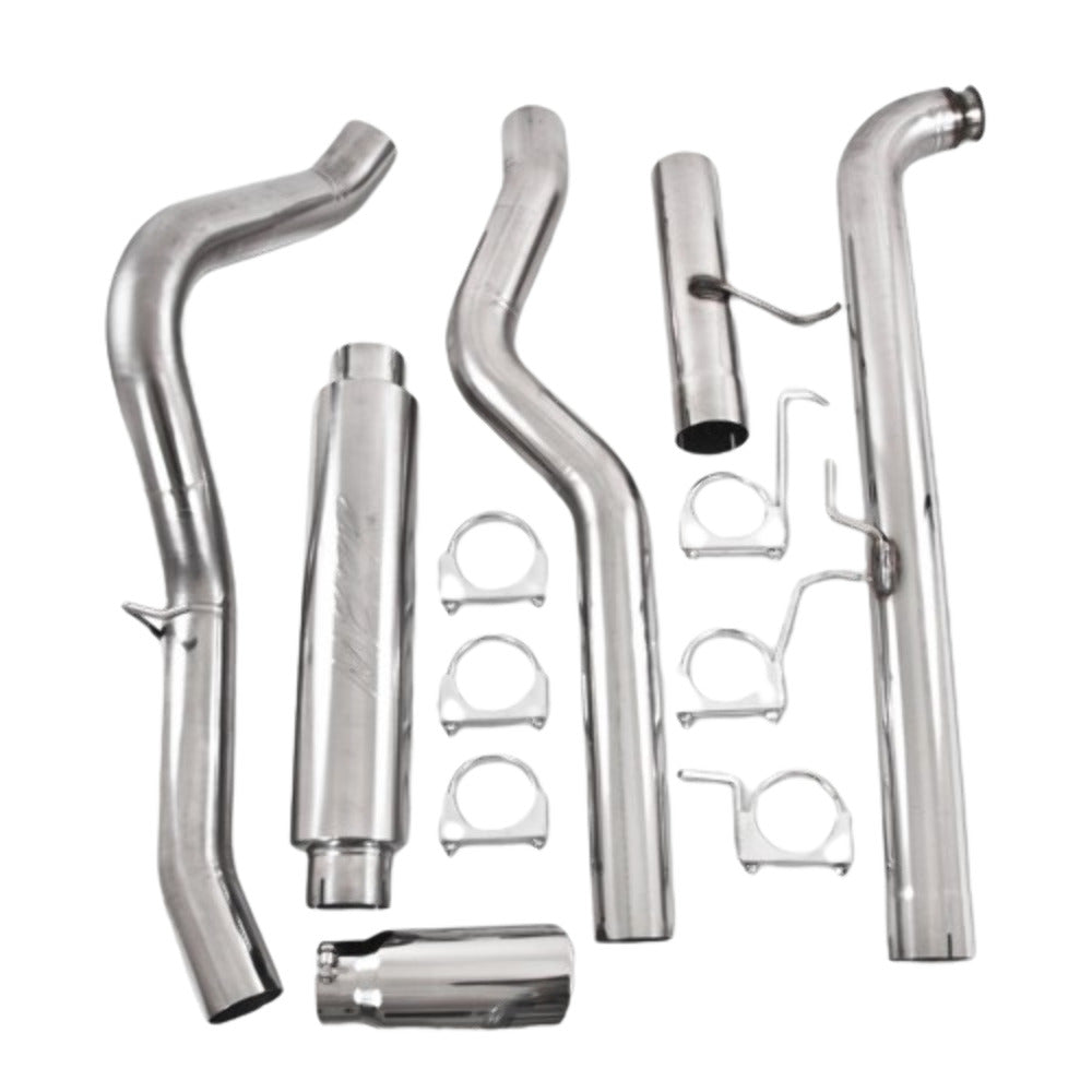 Pro Series Cat Back Exhaust System; 4 in.; Incl. 4 in. Front Pipe/Ext. Pipes/Muffler/Tailpipe/Hardware/5 in. OD Tip; Single Side Exit; T304 Stainless Steel;