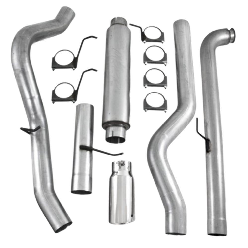 Installer Series Cat Back Exhaust System; 4 in.; Incl. 4 in. Front Pipe/Ext. Pipes/Muffler/Tailpipe/Hardware/5 in. OD Tip; Single Side Exit; Aluminized;
