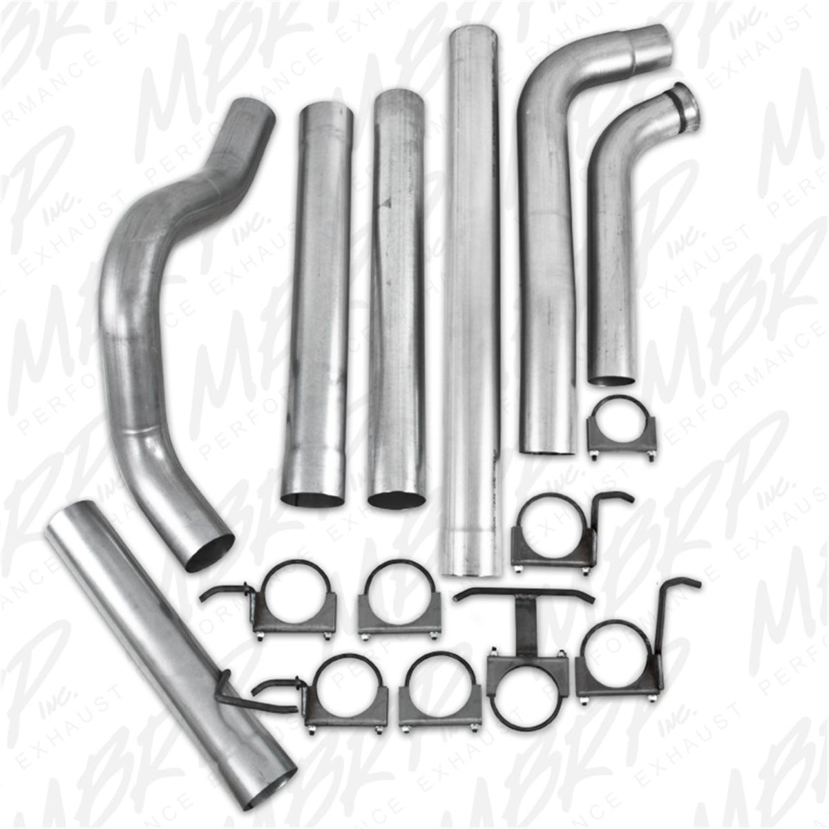 PLM Series Turbo Back Exhaust System; 4 in.; Incl. 3.5 in. Turbo Downpipe/MidPipe/Ext.Pipes/Muffler Delete Pipe/Over Axle Pipe/Hdw; No Tip Incl.; Single Side Exit; Aluminized;