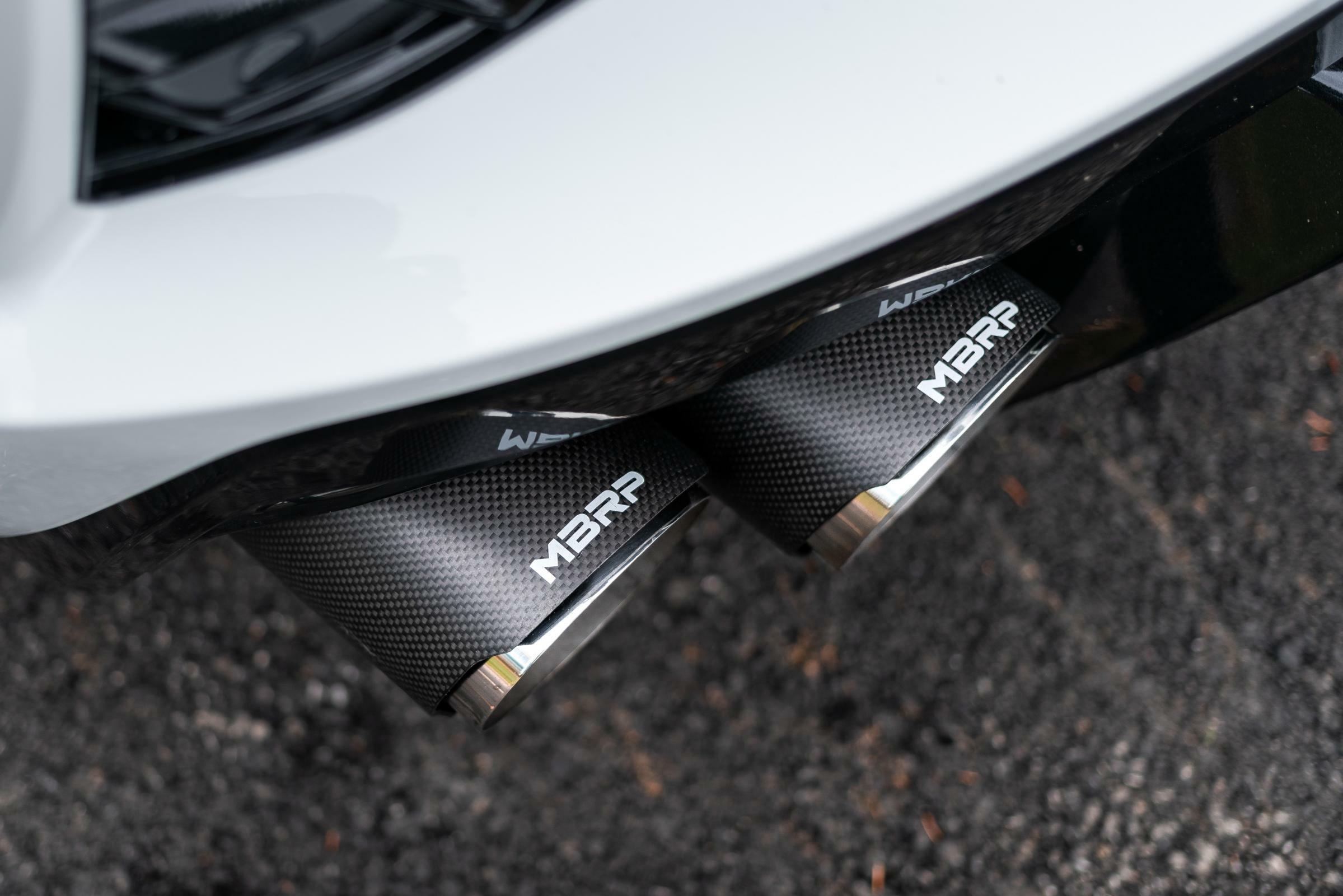 T304 Stainless Steel 3" Cat-Back Quad Rear Outlet with Carbon Fiber Tips, Active