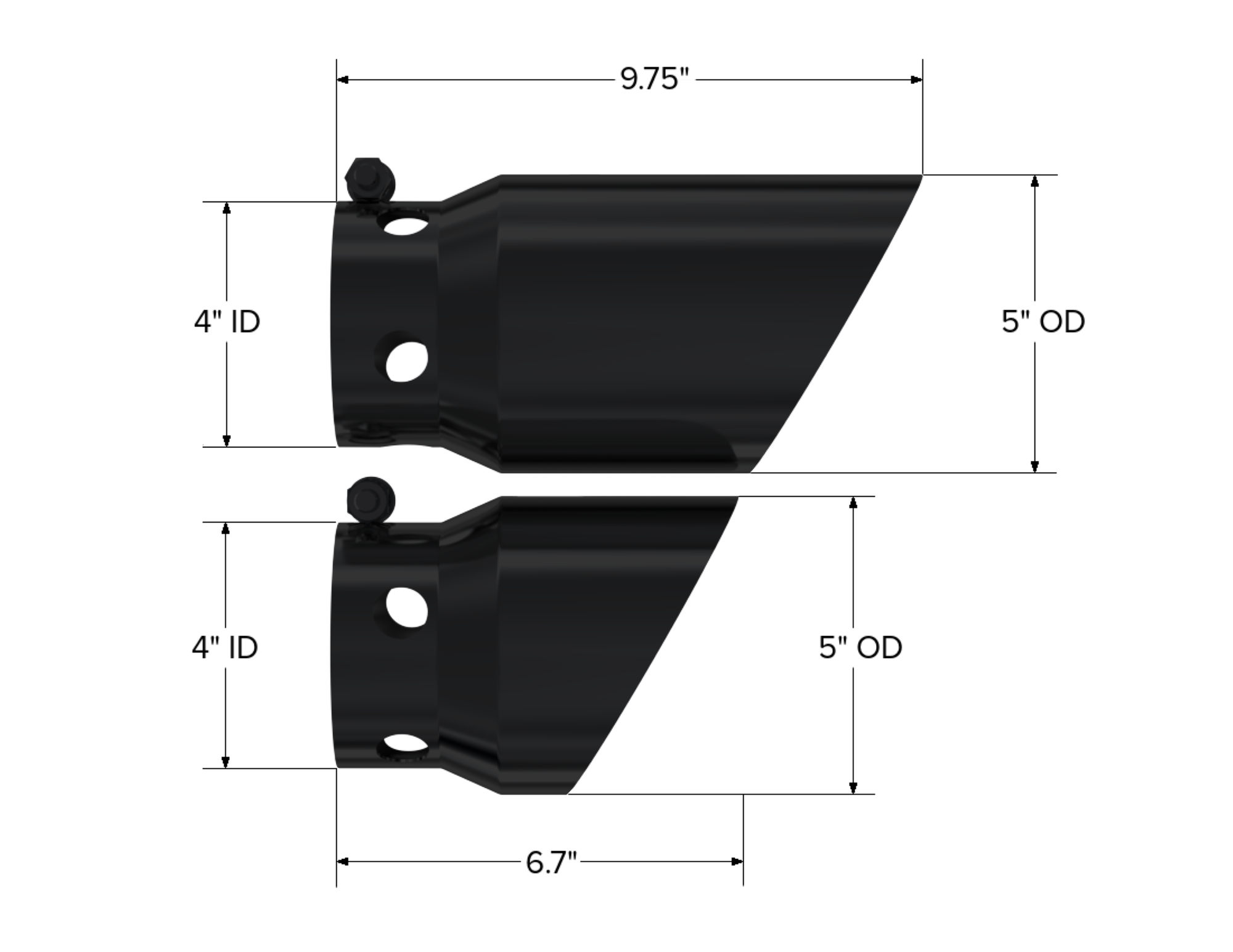 Black-Coated Tip 4" Inlet, 5" Outlet Tip Cover Set - 6.75"; 9.75" length