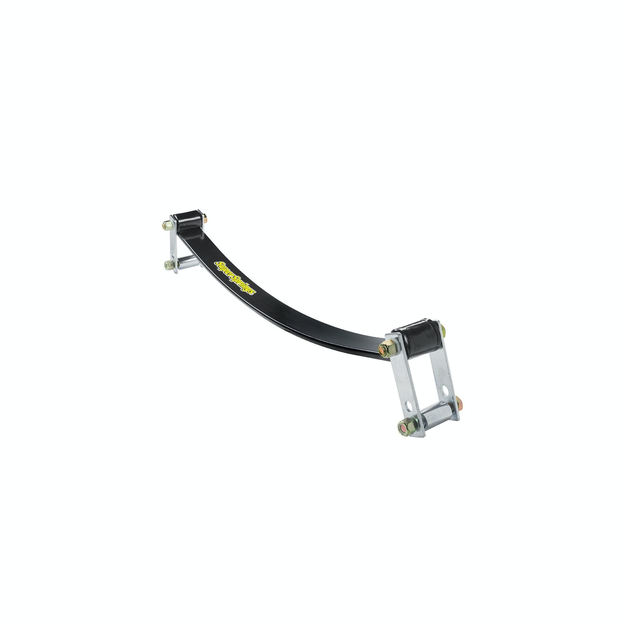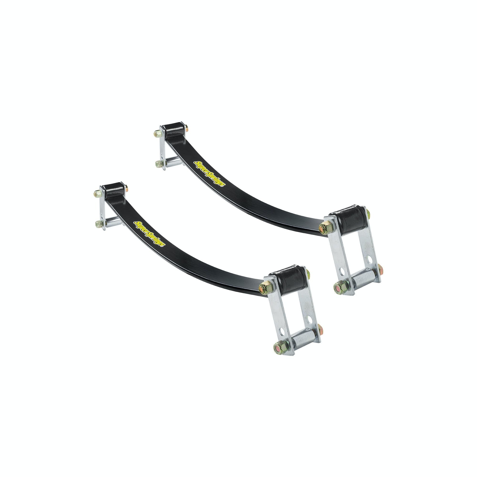 SuperSprings(R) are a unique and patented self-adjusting suspension stabilizing system for vehicles with rear leaf springs, designed to level loads and reduce body roll. SuperSprings(R) provide users extra load support and reduce body roll without compromising ride quality. They are manufactured using a variety of different sized springs to support multiple applications. All SuperSprings(R) are manufactured in the U.S.A. from SAE5160H high grade, shot peened steel.