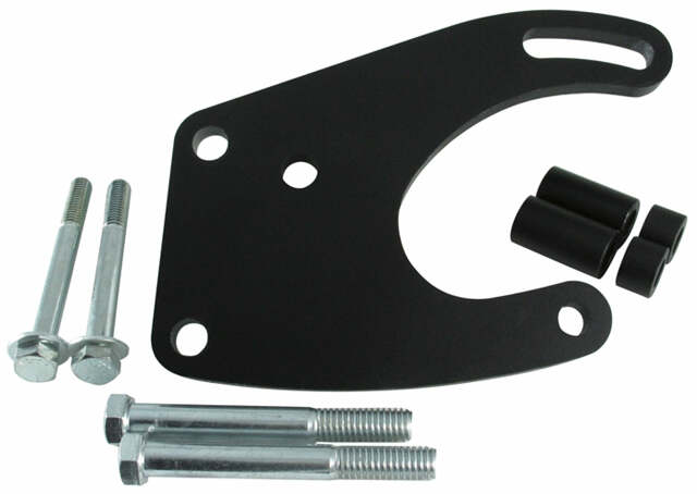 Power steering pump bracket for attaching a Saginaw style P/S pump to Ford 289/302/351W. Painted bla