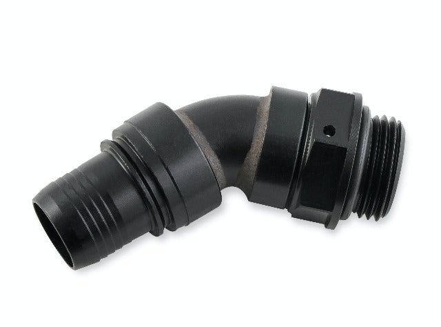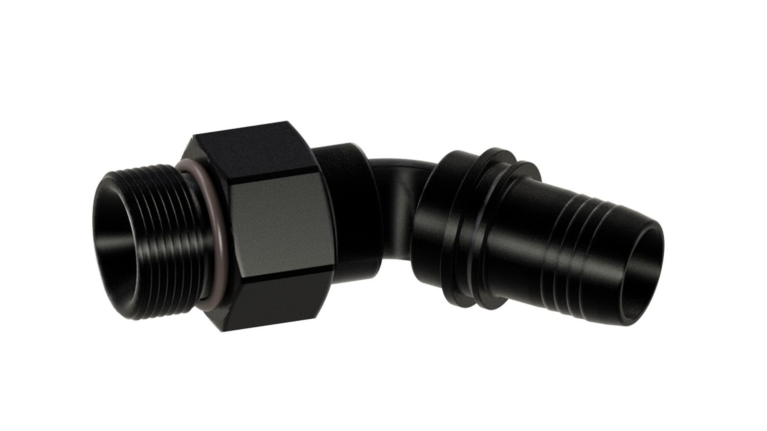 UltraPro 45 Deg. Crimp-On AN Port Hose End; Fitting Size: 7/8-14 in. [ -10AN] O-Ring Port Swivel; Hose End Size: -6AN; Anodized Black; Aluminum;