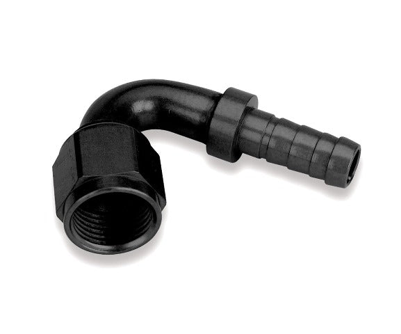 Auto-Crimp™ 120 Deg. AN Hose End; Fitting Size: -4AN Female; Hose End Size: -4AN; Anodized Black; Aluminum; Bagged Packaging;