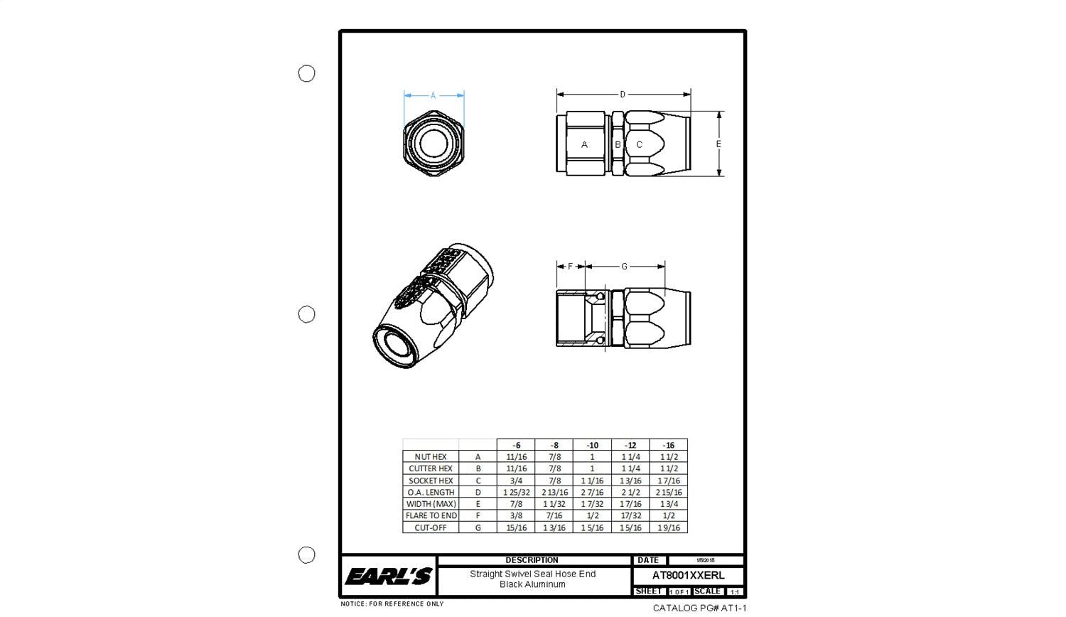 Swivel-Seal™ Straight AN Hose End; Fitting Size: -6AN Female; Hose End Size: -6AN; Anodized Black; Aluminum; Bagged Packaging;