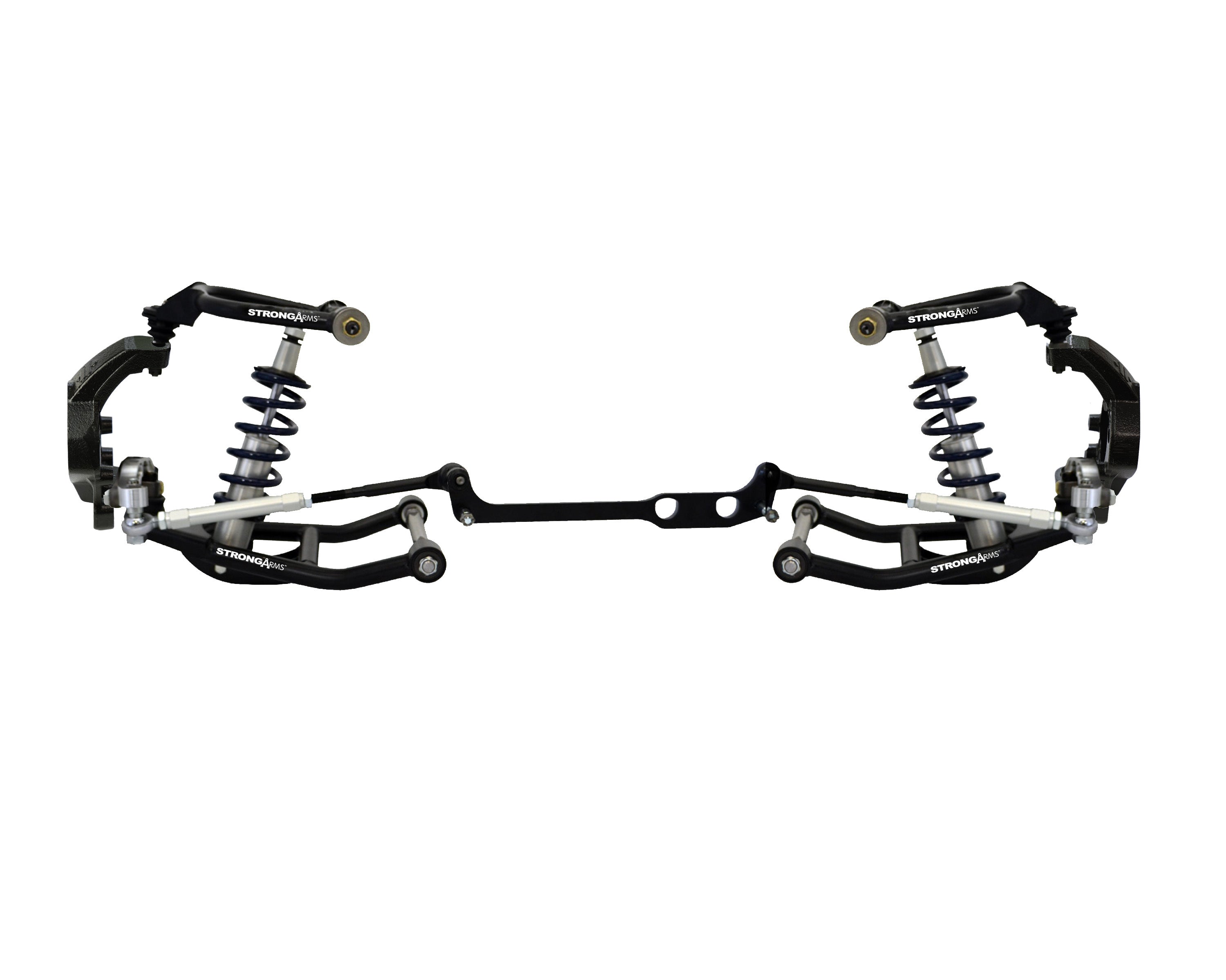 HQ Coil-Over System with hub spindles & trailing arms for 1963-1979 Corvette (stock diff.). Includes front and rear HQ Coil-Overs, front TruTurn, Corvette hub spindles with caliper brackets, rear StrongArms for hubs and front sway bar.