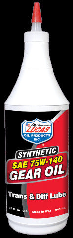 Lucas Synthetic SAE 75W-140 Trans & Diff Lube is a pure-synthetic, non-foaming, super-slick, long-lasting lubricant designed especially for heavy duty or high performance applications where other gear lubricants just aren?t good enough. Contains a special additive package that cushions gears and resists ?squeezing out? under extreme pressure. We have improved the high speed shock load and significantly improved anti-wear performance, which provides the ultimate protection to the gear components. Especially designed to stand up to high temperatures without losing its lubricity. Excellent to quiet whines in noisy differentials. EXCEEDS ALL GL CLASSIFICATIONS API MT-1, API GL-5, MIL-PRF-2105E, MACK GO-G, PG-2 Limited Slip
