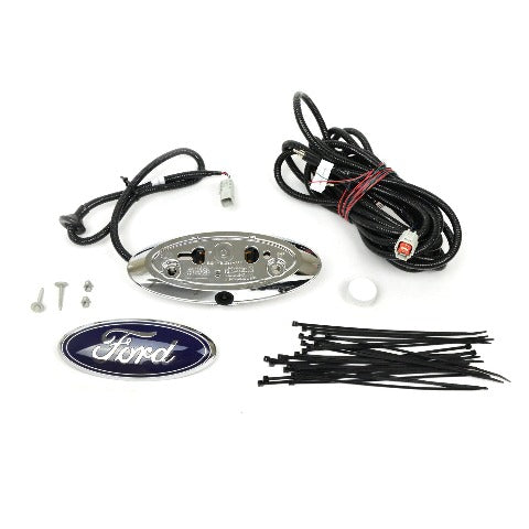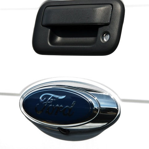 The Authentic Ford oval camera kit to integrate with your Ford F-150 / Super Duty / Flex aftermarket display or factory display (interface required for factory display integration. See compatibility tab for detailed compatibility information). This kit includes the factory replacement Ford oval bezel with integrated OEM color camera and chassis harness. When you put your truck in reverse, you'll see a complete view of everything behind your vehicle with parking gridlines, thanks to the high-resolution OEM camera built into the factory original Ford oval bezel.