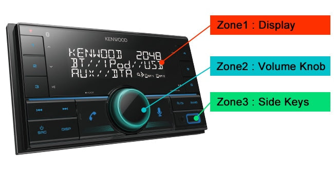 You can adjust the front panel illumination into 3 separate color zones.