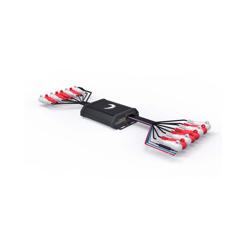 The Diamond Audio Digital Signal Processor MSDSP88 is an 8-channel, IP7-rated waterproof DSP featuring 8 inputs and 8 outputs, a 31-band parametric EQ, fully adjustable crossovers, a maximum pre-out voltage of 6.5V, and a frequency response from 10Hz to 25kHz. Designed for versatile integration into cars, motorcycles, boats, or powersports vehicles, it allows precise tuning, time delay adjustment, and audio customization in various environments.