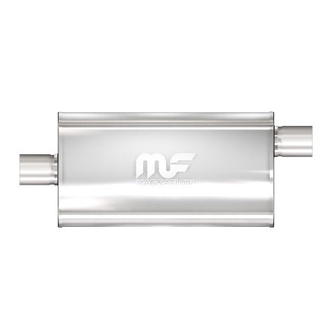The MagnaFlow 5" X 11" Oval Straight-Through 12909 is engineered to enhance your ride with a healthy helping of our signature exhaust sound and dyno-proven performance thanks to its free-flowing straight-through perforated stainless steel core wrapped in stainless steel mesh and acoustic fiber fill. The reversible, universal 3.5/3.5in. diameter inlet/outlet Straight-Through layout allows you to install it in whatever orientation and configuration you see fit. However, professional installation is highly recommended. Muffler 12909's weight-optimized 5x11x22in. oval-shaped body features a satin finish that elevates the overall aesthetics of your current exhaust setup. 12909 is made of durable, corrosion resistant stainless steel and produced using cutting-edge CNC precision robotic manufacturing techniques, all backed by MagnaFlow's limited lifetime construction warranty.