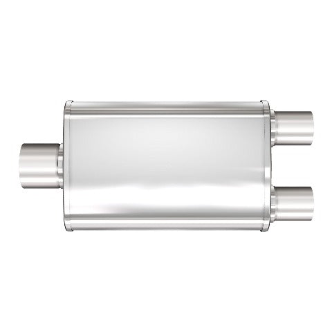 The MagnaFlow 4" X 9" Oval XL Multi-Chamber 13288 features a straight-through, weight-optimized reversible design with a perforated stainless steel core featuring baffles and tuning gates, enabling it to deliver the powerful signature sound and dyno-proven performance that's made MagnaFlow a household name. Muffler 13288's oval-shaped, 4x9x14in. body and universal 3/2.5in. diameter inlet/outlet layout enables flexible installation options to match the spacing requirements of your vehicle. Professional installation is highly recommended. 13288 is produced using advanced CNC precision robotic manufacturing techniques and features durable, corrosion resistant stainless-steel construction, all backed by MagnaFlow's limited lifetime warranty.