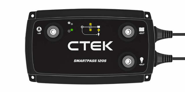 Smartpass 120S charges and supplies the service battery and equipment with 120A, separates critical equipment from non-critical equipment ensuring that radio, emergency lights and navigation systems always have power.