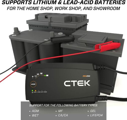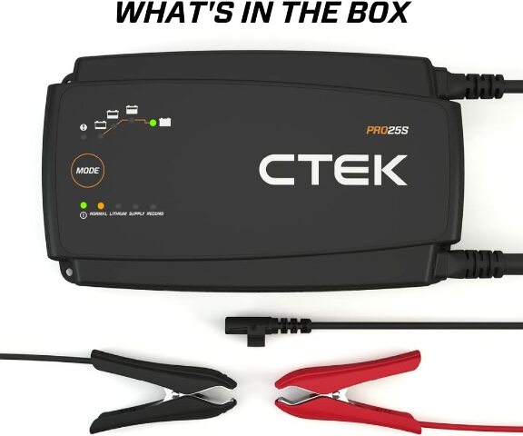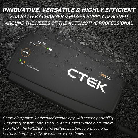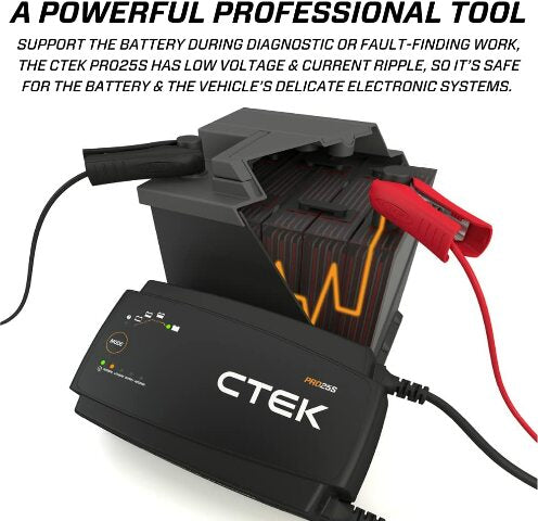 CTEK PRO25S, 25A, 12V Battery Charger and Power Supply, Battery Tender Charger, Battery Maintainer, 12V Lithium Ion Battery Charger for Car and Truck with Reconditioning Mode and Battery Desulfator