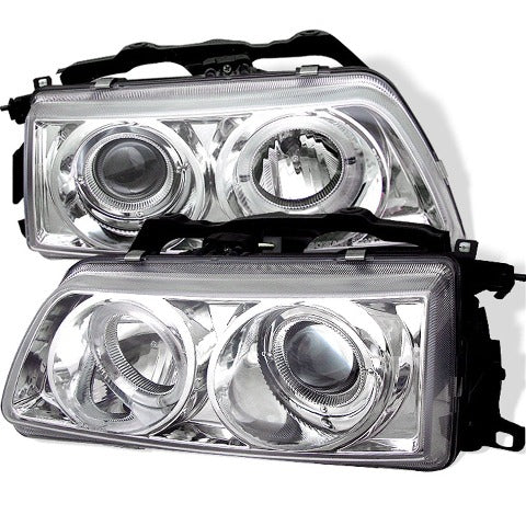 Halo Projector Headlights; Bulbs Included; Pair; Chrome;
