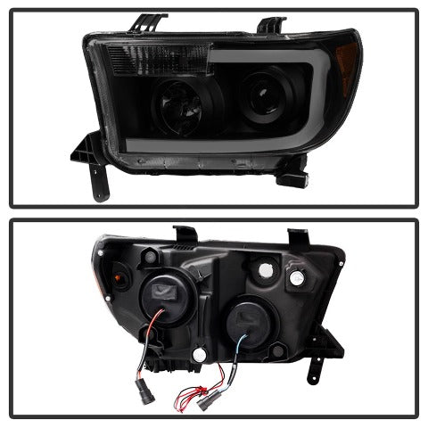 Toyota Tundra 07 13 Toyota Sequoia 08 13 LED Light Bar Projector Headlights Black Smoked< p>