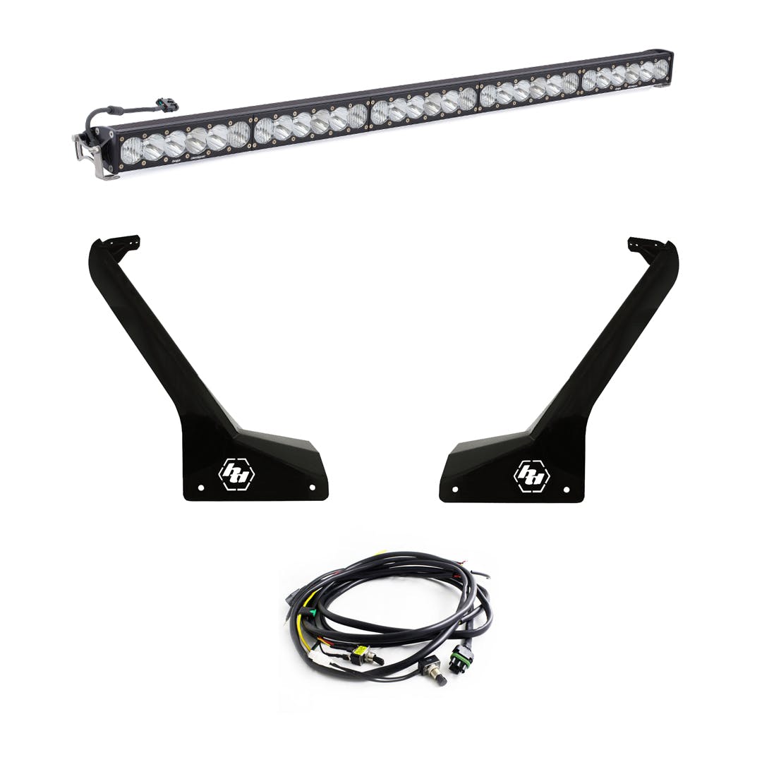Carefully designed to be the ultimate roof mounted light bar kit for the JL and Gladiator JT platforms. The 50 inch OnX6 plus combines far reaching, high speed spot reflectors with the Baja Designs Driving Combo lens for a smooth yet intense pattern that will light up the whole trail. This kit includes a 50 inch OnX6 plus LED Light Bar, vehicle specific mounting brackets, hardware, and wiring to make installation a breeze. No cutting, trimming, or drilling is required and all wiring is pre-sized for your vehicle.