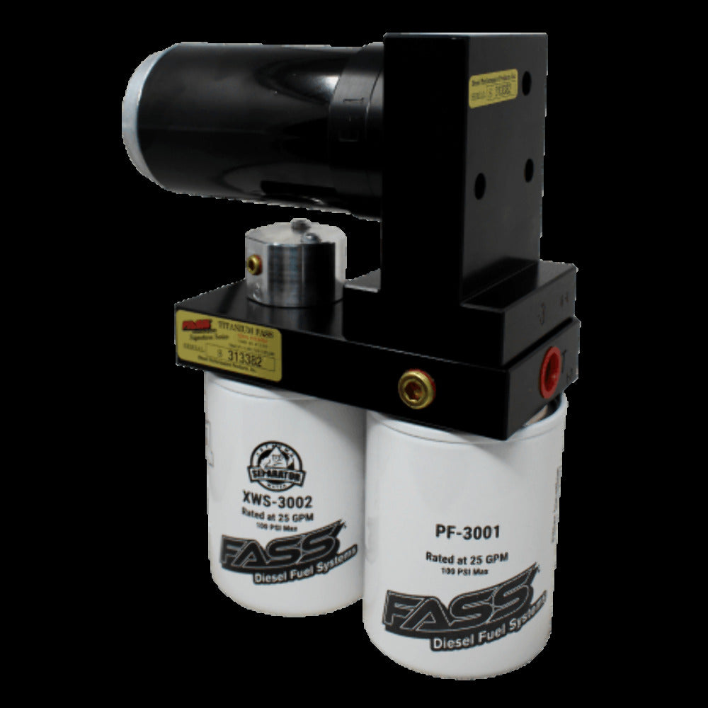 The Titanium Signature Series diesel fuel system was engineered by FASS Diesel Fuel Systems to be the top performing, longest lasting and most reliable aftermarket filtration system in the diesel industry. Rated at 290 gallons per hour you will find this pump is designed for a high-performance vehicle that has a large fuel demands and still comes backed by a limited lifetime warranty. This Titanium Signature Series fuel system can support your Dodge Cummins 5.9L and 6.7L diesel engine with enough fuel for 1200-1500 HP large and multiple aggressive fueling upgrades commonly used during competitions.