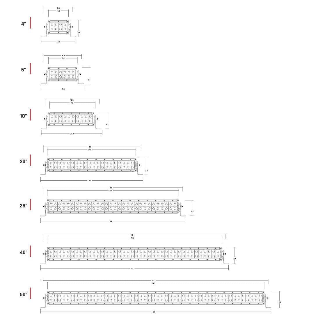 The E-Series is one of RIGIDs most versatile, all-around lighting solutions, and recent enhancements in LED technology delivering up to 111 percent more raw lumens than ever before with the E-Series PRO. Among RIGIDs most popular product lines, the E-Series PRO has recently benefited from several upgrades to improve both looks and performance. Plus, prominent RIGID branding and blacked-out circuit boards give the E-Series PRO a refined look. Available with your choice of optics, the E-Series features a host of beam options, including Spot, Flood, Driving, Hyperspot, Diffused, Driving/Spot combo, Spot/Flood combo, Spot/Hyperspot combo, and Midnight Edition. These and other innovations make it one of the brightest and most efficient LED light bars on the market. The E-Series was born in off-road, but its versatility makes it well suited for use with power sports, marine, general automotive and even first responder applications. Own The Night with RIGIDs E-Series double row LED light bar.