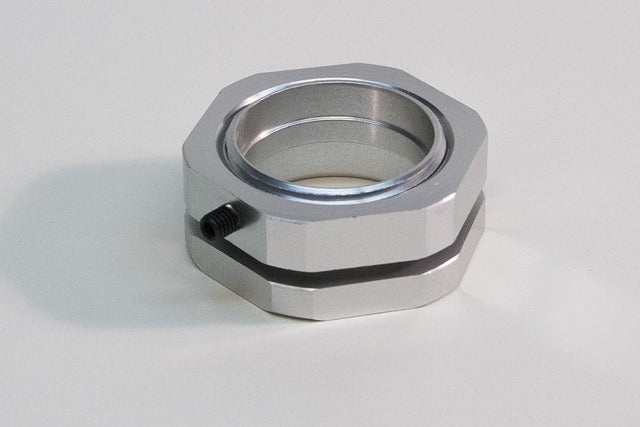 Valve Cover Breather Adapter Modular Breather Adapter, Silver Anodized Billet Aluminum for Push-in style breather, with O ring seal and locking hex ring for 1.50 valve cover bore hole.